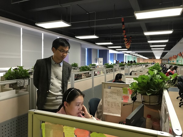 安徽顺丰通讯服务有限公司客服管理部高级经理郭涛接待了周景一行,并陪同参观了毕业生的工作环境,了解了其实习工作内容。