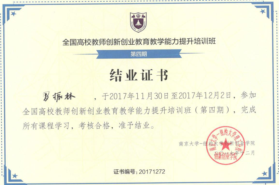 本网讯(通讯员:龚欣)11月30日至12月2日,全国高校教师创新创业教学能力提升培训班(第四期)在南京大学成功举办,来自全国各地20余所高校80余名创新创业教育教学管理人员、课程教师、创业导师等人员参加,伟德官网学生处教师代表罗振林参加培训,并获得结业证书。