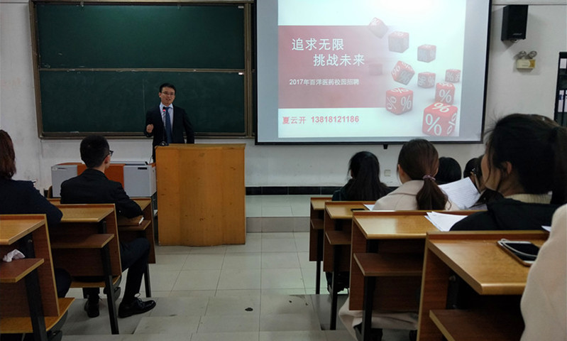 此次双选会的企业宣讲人大部分都是药学院历届校友,他们以学长学姐的身份与前来应聘的学生进行亲切互动,通过播放宣传片、PPT展示等方式介绍本公司的概况、理念、策略和人才培养方案等,同时对于应聘者的具体要求和发展道路进行了详细地介绍,并结合自身经历跟学弟学妹们分享成功的经验和心得。现场气氛活跃,学生们积极投入到对企业的咨询互动之中,校友的力量得到充分发挥。