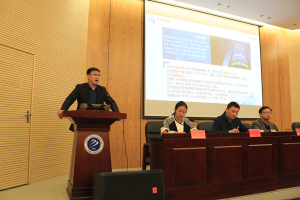 最后,计勇作总结讲话。他分析了校企合作协同育人的必要性,对基地的建设背景做了说明,指出双方要围绕实习实训、课程共建、师资共培、教学改革研究、专业共建等多层次逐步开展合作,同时希望能依托基地,提升内涵建设,打造特色,从而最终实现学生、学校、企业的三方共赢。