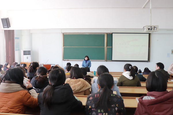 江瑶作《中国特色社会主义进入新时代——学习贯彻党的十九大精神》主题报告。报告深入浅出地传达了党的“十九大”重要精神,她结合改革开放以来国家的发展,重点解读了习近平新时代中国特色社会主义的思想内涵、基本方略、特殊重大意义和丰富内涵、两个一百年奋斗目标的战略部署、我国经济社会发展重大战略部署、坚定不移推进全面从严治党、过去五年的历史性成就和历史性变革、我国社会主要矛盾的变化等几个方面。主题报告理论联系实际,内容全面,切合实际。与会教师党员纷纷表示宣讲是进一步贯彻落实十九大精神的重要辅导报告和高规格党课,作为教师,一定会在十九大精神引领下,专心教育,努力创新,争取更多教学科研成果。