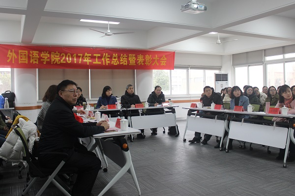 会上,外国语学院各系部主任,教学、行政、学管秘书和分管副院长依次进行了工作述职。他们分别结合各自负责的学科建设、师资队伍建设、科研工作、教学工作、党务工作、行政工作、学生工作等方面进行了全年工作述职汇报,总结分析了2017年工作中取得的成绩、存在的问题和不足,提出了2018年的工作计划。