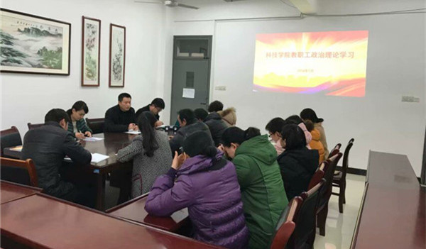 本网讯(通讯员:肖华君)3月1日,科技学院组织开展了政治理论学习会,科技学院全体教职工参会,本次会议由党总支书记黄德垚主持。