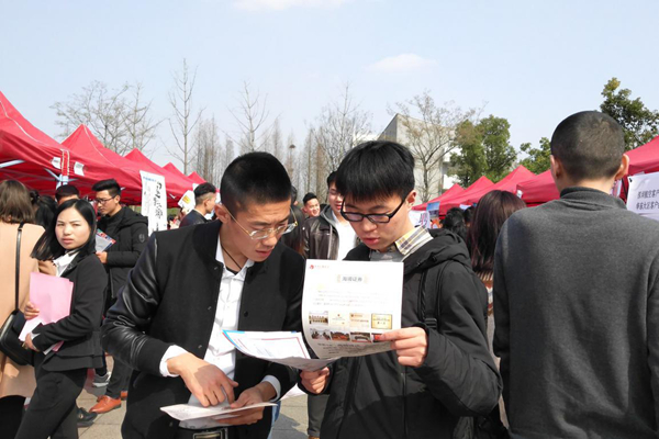 本网讯(通讯员:张小菊)3月21日,伟德官网2018届毕业生春季校园双选会在图书馆南广场举行。本次招聘会吸引合肥万达城文化旅游管理有限公司、合肥国轩高科动力能源有限公司、三只松鼠股份有限公司等共77家企业来伟德官网招聘,提供涉及土木工程、计算机、机械自动化、会计、市场营销等专业共计1260多个岗位。
