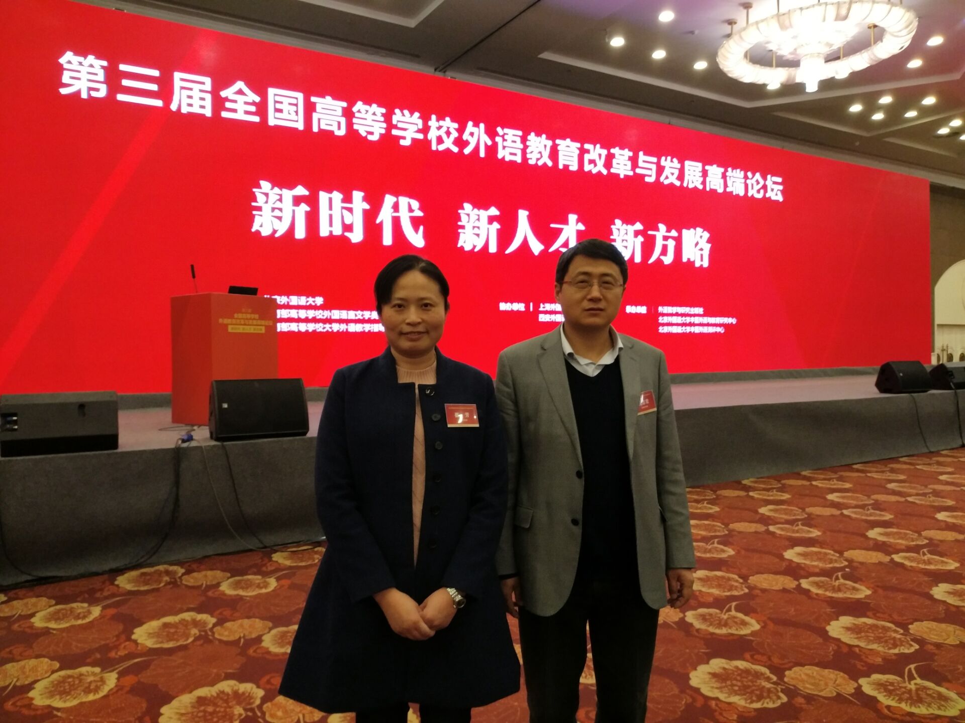 本网讯(通讯员:崔芳、马兰)3月24日,第三届全国高等学校外语教育改革与发展高端论坛于在北京开幕。2000余位高校校长、外语教育专家、学者、教学管理者与一线教师云集论坛,共谋中国高等外语教育改革与发展新时代大计,同书中国高等外语教育改革与发展奋进之笔。伟德官网外国语学院副院长王志宏、公共英语教学部副主任崔芳应邀参加此次论坛。